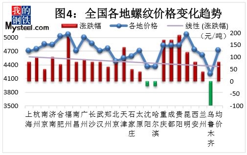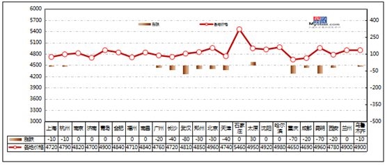 本周国内钢材市场价格震荡趋强运行,整体上而言价格表现情况与上周相符,期货提振及成本角度支撑依旧使得现货市场表现出长强板弱的局面。首先对于本周而言,期货盘的不断发力使得现货市场心态大受提振,而坯料方面的逐步好转同时也在支撑现货成本价格。不过迫于需求面的乏力,除中板表现尚可外,热轧及冷轧需求均表现不佳。具体情况如下: Mysteel唐山快报 唐山普钢坯昨本地及昌黎部分出厂结3990降10,迁安地区4000稳。今日钢市趋缓调整,钢坯成交一般,下游成品材价格稳中小幅趋弱整理,具体成交如下: 带钢:唐山小窄带较昨持稳,主流厂家报4220,整体市场成交一般;唐山355带钢市场现货较昨晨涨10,含税主流报4120-4150,市场成交一般。 型钢:唐山型钢工角持稳,槽钢降20,现主流报价工字4360,槽钢4330-4350,角钢4340,整体成交偏弱。 热卷:唐山热卷降10,3.0卷4130,5.5mm主流开平4100,锰开平4260 中板:唐山中板持稳,14-22mm普板报价4250,锰板4430。 管材:唐山脚手架管主流较昨稳,现含税报4420-4470,成交一般。 钢坯:直发尚可,仓储现货4060-4070含税出库,成交寥寥,成品材整体成交一般偏弱,28日下午唐山普方坯稳,本地部分钢厂及昌黎部分钢厂出厂报3990,现金含税 钢材行情 建筑钢材:本周建筑钢材价格主流上涨。 国内方面" style="border: 1px solid rgb(209, 209, 209); padding: 3px; margin-top: 5px; margin-bottom: 5px;"> 本周国内建筑钢材价格整体继续上涨。截止10月26日,全国24个城市HRB400材质20mm规格螺纹钢平均价格为4720元/吨,较10月19日上涨80元/吨;全国24个主要城市HPB300材质8mm规格高线平均价格为4879元/吨,较10月19日上涨65元/吨。分区域来看,西南、福建地区市场资源紧缺,价格涨幅在170-230元/吨不等;华东地区需求释放良好,价格也明显上涨;华北、西北地区价格也呈小幅上涨态势;仅东北、新疆地区需求走弱,价格弱势下跌。 具体来看,本周受期螺震荡走高影响,叠加下游需求释放良好,现货库存大幅下降,各地价格也呈震荡上扬态势运行。对下周而言,1、供给方面,虽本周钢材产量仍小幅回升,但考虑到11月来临将执行秋冬季错峰生产以及上海进博会周边限产,供给或将呈小幅下降趋势;2、库存方面,本周市场、钢厂库存继续大幅下降,多地资源规格紧缺,部分商家存惜售情绪;3、需求方面,本周虽上海地区受进博会影响需求受限,但整体来看各地需求仍表现良好。综合来看,预计下周国内建筑钢材价格或仍有较强支撑。 热轧卷板:本周国内热轧板卷市场涨跌互现。 国内方面" style="border: 1px solid rgb(209, 209, 209); padding: 3px; margin-top: 5px; margin-bottom: 5px;"> 价格方面:据统计,全国24个主要城市,跌幅最大的城市为长沙、西安,周累计跌幅40元/吨;涨幅最大的城市为福州,周累计涨幅为50元/吨。 华东市场方面:上海热轧板卷市场本周震荡运行,成交较弱,现货价格受外围影响较小,基本是按成交报价为主,截止发稿日,1500mm普碳钢卷主流报价4160-4180元/吨,1800mm宽卷报价在4370-4400元/吨。低合金1500mm主流报价4370-4420元/吨,1800mm低合金报价4420-4460元/吨。本周来看,上海库存继续增加,但增速仍处于预期内,近期上海资源分流严重,导致市场库存资源仍不多,主要是市场心态走弱,需求持续低迷,行情震荡,贸易商自然也就不愿意接货。当前已经由钢厂强势逐渐向贸易商强势转变,但据了解,多数贸易商表示如十一月份钢厂放出后结算资源以及好的结算政策的话,贸易商还是愿意接一些货的。但当前钢厂压力已有明显体现,后期如果钢厂挺价力度放松,低价资源或将陆续放到市场。加上即将进入十一月,需持续关注北材南下情况。下周预计上海热轧板卷或将震荡运行。 华南市场方面:本周广州热轧板卷价格震荡盘整运行。截止目前,主导钢厂4.75mm以上普卷价格基本在4250-4270元/吨,与上周相比持平。市场方面,周初期货震荡向上,代理商涨价氛围浓,但是在高价成交弱的情况下,只好回调价格,低位成交效果较好;临近周末,成交日渐转弱,价格在期货拉涨的背景下却维持不变。库存方面,本周燕钢,涟钢,鞍钢联众等主力钢厂正常到货,建龙到货慢慢增加,敬业钢厂有少量到货;而市场需求并未得到很好的释放,库存较上周小幅上涨,据不完全统计,本周广州热轧卷板库存为50.3万吨,较上周增加1.5万吨。心态方面,代理商对后市行情稍显悲观;10月即将过去,但是需求始终没有达到“金九银十”的预期效果,后期在北材南下的作用下,库存可能进一步增加。综合来看,预计下周广州热卷价格弱势震荡。 华北市场方面:本周京津冀地区热轧板卷继续保持弱势运行,价格整体较上周五降20-30元/吨。近日各地采暖季限产政策出台,具体执行力度还要进一步跟踪,但从本地市场来看,热卷除了个别厂家检修外,其他多正常生产,热卷减量较小。而本周期货及钢坯均有不同程度的上涨,尤其是周四,热卷期货上涨较多,但现货市场并没有收到强劲的拉动,市场依旧弱势运行,而成交方面来看,本周整体交易偏弱,个别期间成交尚可,由于商家面临钢厂结算、资金回笼等,低价回款现象较多。本周监测的16家热轧板卷生产企业总计24条产线实际开工条数22条,整体开工率为91.67%,较上周下降4.17%;实际生产量124.64万吨,较上周下降8.48万吨;产能利用率88.41%,较上周降低6.02%。本周京津冀钢厂厂内库存为23.45万吨,较上一周降5.06%。目前GFGT产线继续检修,其TG也有一条产线检修,其他产线也有不满