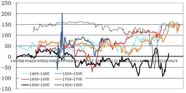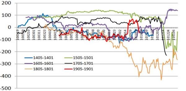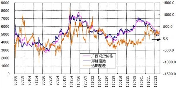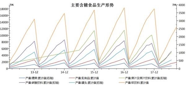 (单位:万亩、万吨) 表2-2:2018年糖料种植面积及2018/19年度食糖产量预计 数据来源:中糖协方正中期研究院整理 2、外糖进口调控继续收紧 2018年国内对于进口食糖的控制继续收紧,虽然征收的保障特别关税的税率由45%下调至40%,但是对于食糖进口配额及配额外进口许可的发放非常谨慎。据海关统计, 2018年1~10月,累计进口糖231万吨,同比增加31万吨。2017年10月~2018年9月的2017/18制糖年累计进口食糖243万吨,较2016/17制糖年的进口量增加了15万吨。 长期看,近两年国内食糖进口量较前几年高峰期显著减少,但国内市场并未出现供应趋紧的迹象,或许下游消费也在下降。  图2-2。 中国近年食糖进口形势 资料来源:中糖协方正中期研究院整理 3、国储等待抛储时机 虽然2017/18年度国内食糖继续增产,但理论上依然存在供需缺口,且外糖进口受到严格控制。不过,由于糖价延续2017年的下跌趋势,并未出现供应短缺导致糖价飙升的局面,所以国储按兵不动。那么,2019年预期继续增产,只要供应上不出现大的问题,国储可能继续持观望态度。当然,若糖价显著上涨,比如回到六千元以上,则抛储的可能性将大大增加。时间上,年初需关注产区天气因素对于食糖生产的影响,而三季度糖厂剩余库存的多寡也是决定市场供应形势的关键因素。这两个时期是国储可能投放的重要时间窗口。 4、国内食糖消费形势难乐观 2017/18年度国产糖累计销量达到985.88万吨,较2016/17年度同期增加114.93万吨。而进口量同比也增加了15万吨,国内食糖的工业期末库存理论上是45.16万吨,较上年度减少了12.71万吨。表面上看似乎消费形势不错,但2018年前三个季度糖价持续走低说明事实未必如此。考虑到国内食糖产量以及进口量和上年度结转库存, 2017/18年度国内食糖的总供应量为1332万吨,较2016/17年度总供应略增4万吨。而最近每年都预期国内食糖消费量超过1500万吨,但没有出现供应短缺的迹象。当然,部分非正常渠道的进口糖以及其他甜味剂对食糖的替代也影响到国内糖的消费,不过2018年打击食糖走私力度空前且玉米淀粉价格持续走高似乎不致对国内食糖供需产生显著冲击。 据有关机构统计, 2018年1-9月份(部分品种的数据截至7月份)国内主要含糖食品累计产量普遍下降,仅碳酸饮料略有增加。其中,果汁产量降幅最大,为-27.1%;碳酸饮料产量略增1.18%。这与2017年普遍增产形成鲜明对比。 (1)软饮料类,累计产量12681.8万吨,累计同比减少15.02% (2)果汁饮料类,累计产量1023.02万吨,累计同比减少27.1% (3)碳酸饮料类,累计产量1093.9万吨,累计同比增长1.18% (4)罐头类,累计产量550.07万吨,累计同比减少20.9%; (5)乳制品类,累计产量1969.8万吨,累计同比减少13.7%; (6)糖果类,累计产量174.2万吨,累计同比减少6.32%。 看来,下游消费减少是造成糖价走势疲软的重要原因。随着国内人口增速显著放缓,加上饮食健康意识增强,食糖消费未来增长空间恐怕有限。  图2-3。 中国近年主要含糖食品生产形势 资料来源:国家统计局方正中期研究院整理 第三部分国际原糖持仓及国内食糖价差分析 1、2018年原糖持仓大部分时间保持净空 2018年大部分时间国际糖价继续走低,直到8月下旬主力合约短暂跌破10美分后才逐渐走稳并出现反弹,而10月下旬以后再次回落调整。主要利空压力仍来自对于食糖供应过剩的预期,而印度食糖加大出口力度是重点利空题材。作为传统的主要产糖国和出口国,巴西在2018年食糖产量显著减少,大量甘蔗被用于生产乙醇。此外,巴西货币雷亚尔的汇率大幅波动也是造成糖价涨跌的重要影响因素。根据CFTC统计,ICE11#原糖期货市场中,2018年大部分时间内非商业机构持仓表现为净空,这表明市场对于糖价走势持相对悲观的态度。不过,持续的低糖价已经挫伤食糖生产企业的积极性,2019年全球食糖供应压力有望逐渐减轻。特别是,在印度主要产区发生严重虫害的消息出台前后,大量空头进行回补,10月16日持仓数据转为净多持仓。截至2018年11月13日,净多持仓已连续保持5周时间,最高时为61324手。  图3-1。 ICE原糖非商业净多持仓 资料来源:CFTC 方正中期研究院整理 2、期现价差及郑糖跨合约套利  图3-2。郑糖期货指数与广西现货价格基差对比 资料来源:文华财经、昆商糖网方正中期研究院整理 2018年国内白糖基差相当稳定,现货一直保持升水状态,平均升水幅度在300元左右,处于十余年来基差的中等水平。由于国内市场存在理论上的供应缺口,且大部分时间内糖价低于制糖成本,所以现货价格相对稳定。期货市场因存在过剩预期,且国际糖价远低于国内市场,所以相对现货市场表现疲软。目前市场普遍预期2018/19年度国内食糖增产幅度不大,若国际市场因印度大幅减产而由过剩预期转为供需相对平衡,则2019年糖价走强则是大概率事件。一般地,期货市场对于周围影响因素的反应要比现货市场灵敏,这样未来基差转弱的可能性较大。以往看,牛市初期国内市场的基差均为负值,所以基差的变化将为糖价是否完成筑底并转为长期走强提供参考信号。  图3-3。近年郑糖期货5月与当年1月合约价差对比 资料来源:郑州商品交易所方正中期研究院整理 市场预期2018/19年度食糖继续增产,以往看增产年份多数5月合约较1月合约贴水,1905也是多数时间里贴水于1901合约。2018年10月份,受国际糖价上涨的带动郑糖也出现一波反弹,1905合约一度比1901合约升水70元,但随着反弹